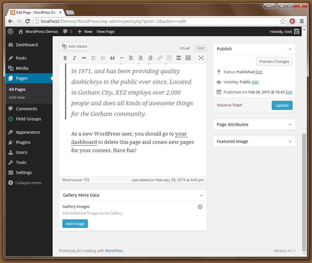Gallery Imagesand set the type asLoop, fill out the rest of the required fields, for placement rules attach this custom meta data to WordPress type ofPageor whatever your requirements are. Hit Publish Figure 1 - Next, Add additional field called